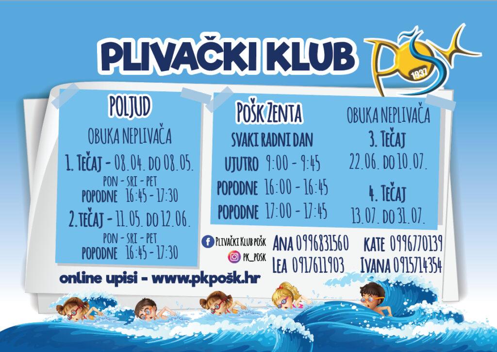 Prva dva tečaja obuke neplivača održavaju se na zatvorenim bazenima Poljud ponedjeljkom, srijedom i petkom u terminu 16:45 – 17:30h. Cijena obuke je 60€, a za drugo dijete plaćate 50% cijene (ukoliko imate djecu u različitim grupama, popust se obračunava na jeftiniju članarinu).